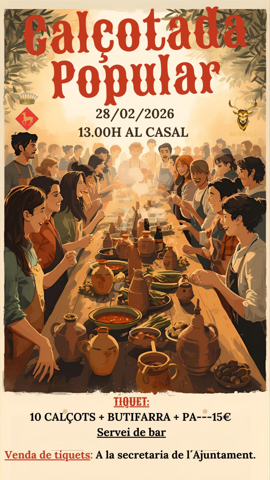 La Comissió de Festes organitza la calçotada popular el dissabte 28 de febrer a la 13 h al Casal. Podeu comprar els tiquets a la secretaria de l’ajuntament.